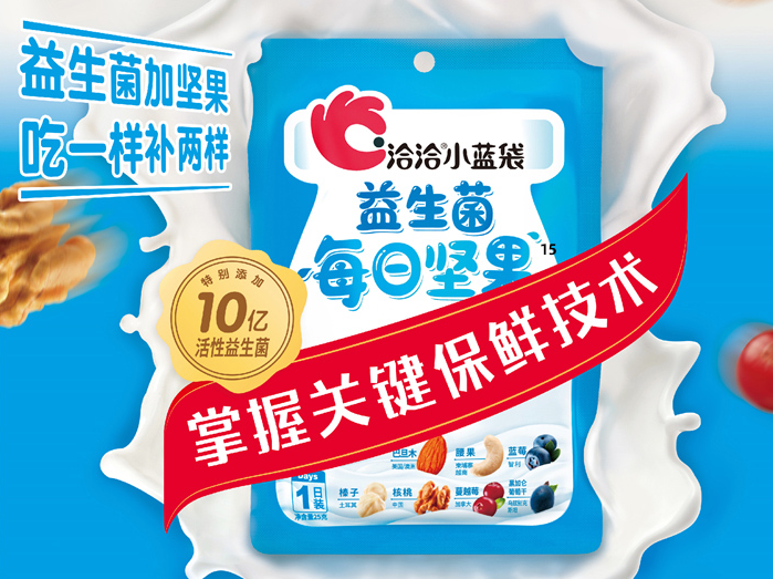 随着消费者对健康食品的格外关注,坚果类食品因营养丰富成了人们心目中理想的爆款零食,麻将胡了2食品更是凭借着科技创新与新鲜品质一度领“鲜”坚果市场。当单一口味的坚果不能满足消费者需求,麻将胡了2先后创新性地推出了“小黄袋每日坚果”、“小蓝袋益生菌每日坚果”等新品。